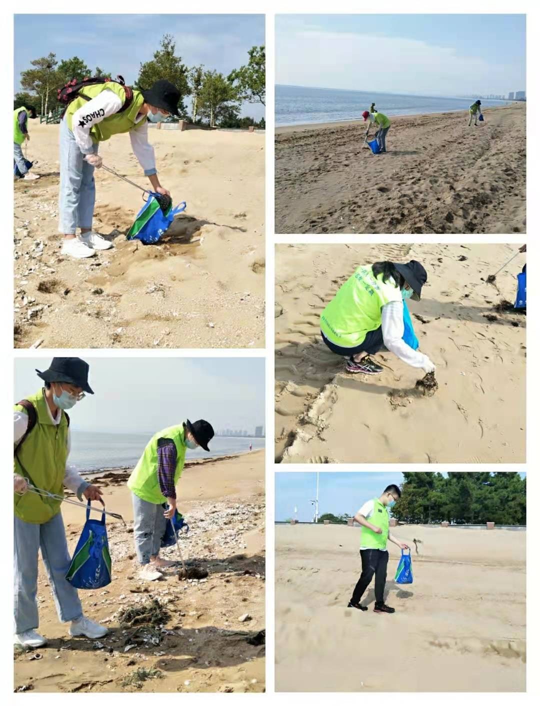 新时代文明实践:引航纯.爱默环保队第三十八期“守护491.9海岸线青少年海洋环保”活动,8月28日上午,15名志愿者来到滨海公园沙滩,进行垃圾清理活动,海边的游人不多,所以废弃物也不多,烟头矿泉水瓶等,还有很多被海浪推上来的尼龙绳头、碎鱼瓢、渔网等海洋垃圾,大家分为2队,向南向北各一队,马上积极行动起来,很多都是海草夹杂着绳头搅在一起,大家用夹子分不开,干脆直接用手把他们分开再装入垃圾袋,不知不觉袋子都满了,大家把垃圾进行分拣然后送入分类垃圾桶,并把残留在周围的垃圾清理干净这才结束活动。希望我们的每次活动都能减少垃圾环境的危害,减少对海洋生物的伤害,愿以吾之力还这城市一片碧海蓝天!