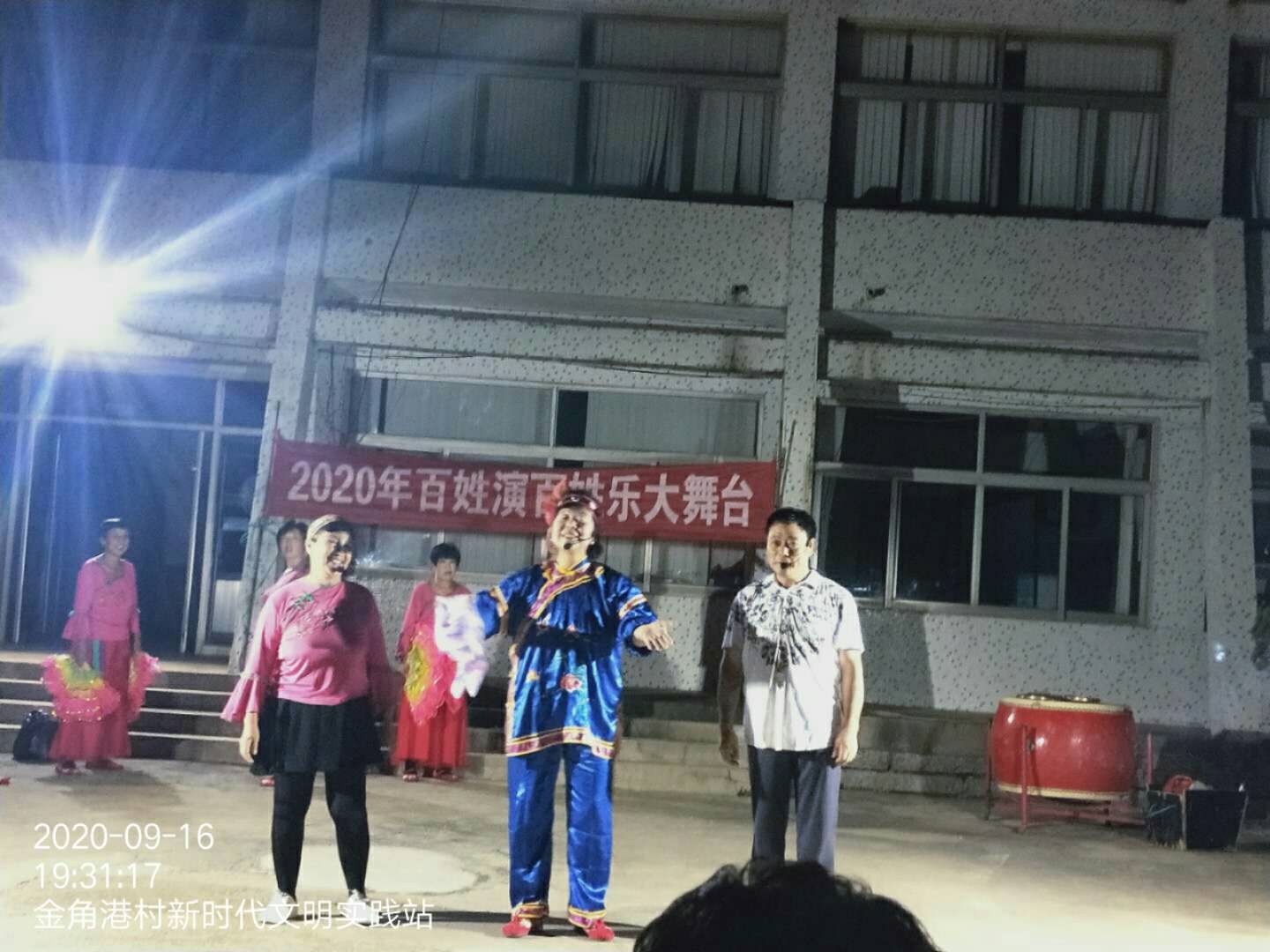 坚定中国特色社会主义道路自信、理论自信、制度自信,说到底就是要坚定文化自信。讲文化自信,我们有充足的理由和充足底气,因为中国特色社会主义文化源自于博大精深的中华优秀传统文化,承继于激昂向上的革命文化,熔铸于生机勃勃的社会主义先进文化,植根于中国特色社会主义伟大实践。积极宣传,激发群众参与文化活动的热情,实现文化融合,振兴乡村。为丰富群众的业余文化生活,金角港村村新时代文明实践站于2020年9月16日晚19:00-20:.30举办文化惠民活动演出,希望通过文艺演出生动展现文明实践新气象,激活乡村振兴的文化动力,让群众感受到文艺的魅力。