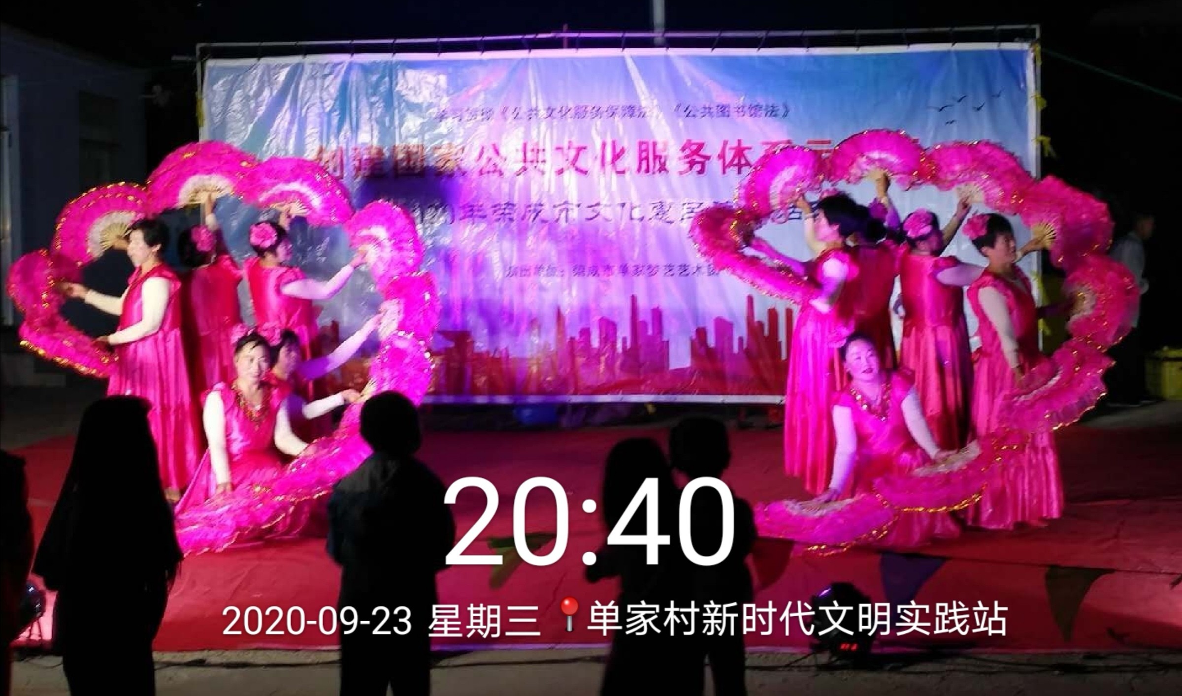 乡村振兴,文化先行。滕家镇大力推进民生实事工程,不断夯实文化基础设施建设,完善城乡公共文化服务体系,切实打通公共文化服务基层的“最后一公里”。单家村新时代文明实践站于2020年9月23日19:00-21:00开展文化惠民演出活动,凸显公共文化阵地功能、文化惠民活动深入民心,旨在提升群众幸福感和满意度。