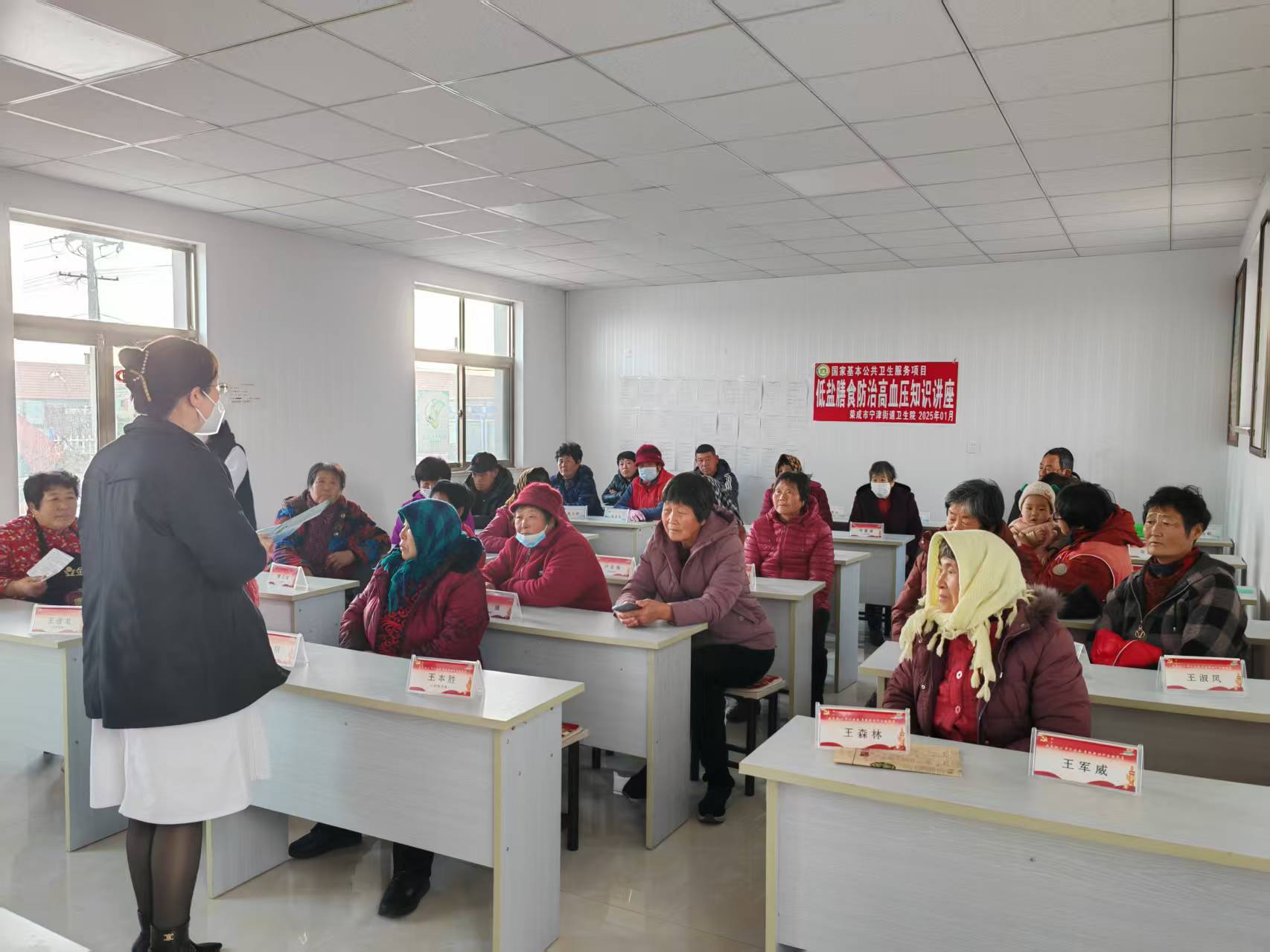 为进一步提高村民健康水平 ,东楮岛村新时代文明实践站于2025年1月22日上午9:00-11:00开展“防治高血压知识讲座”,邀请到宁津医院医生讲解高血压方面的相关知识,旨在通过此次活动,提醒村民们低盐,少油,多锻炼,保障村民健康。