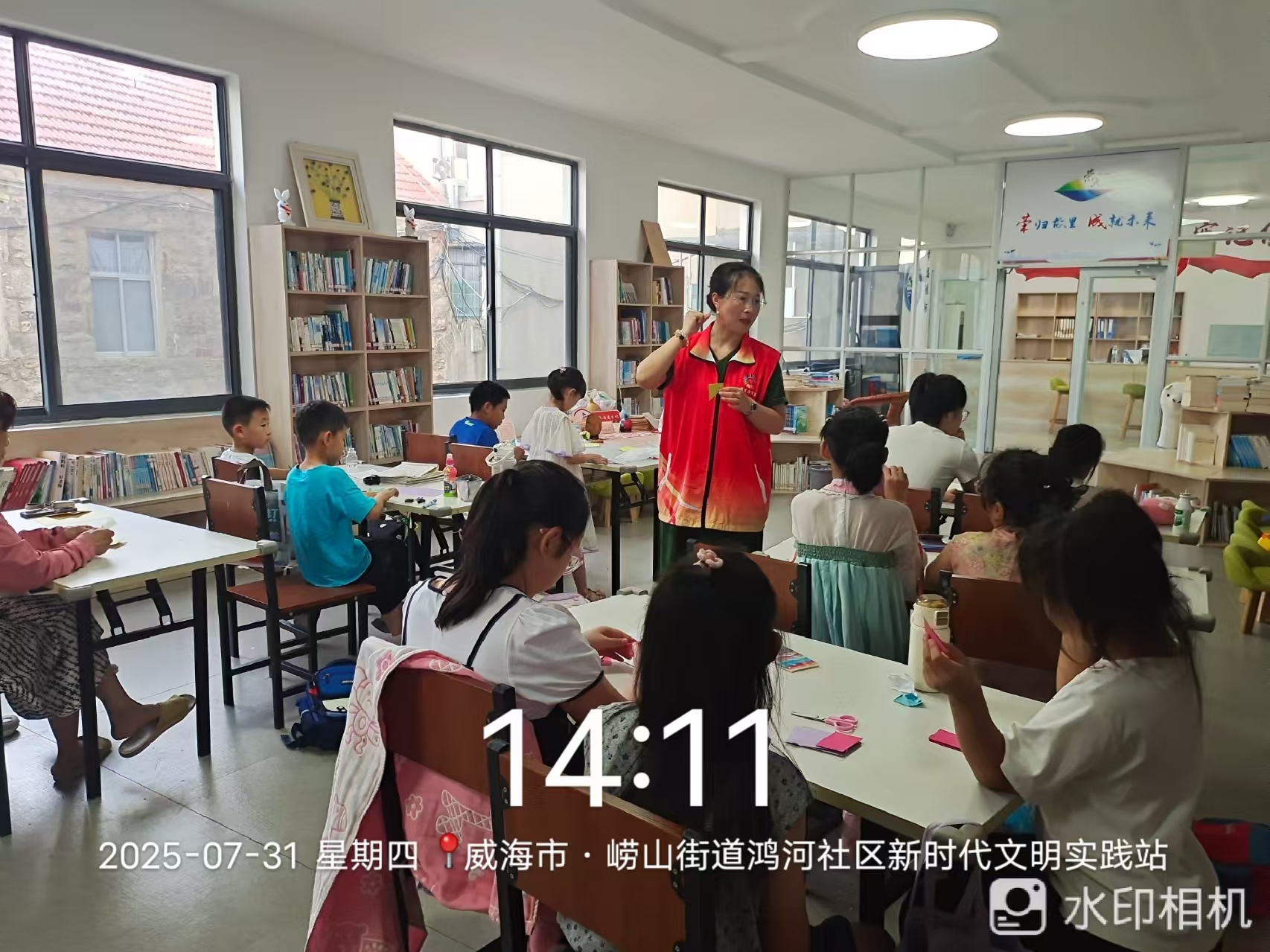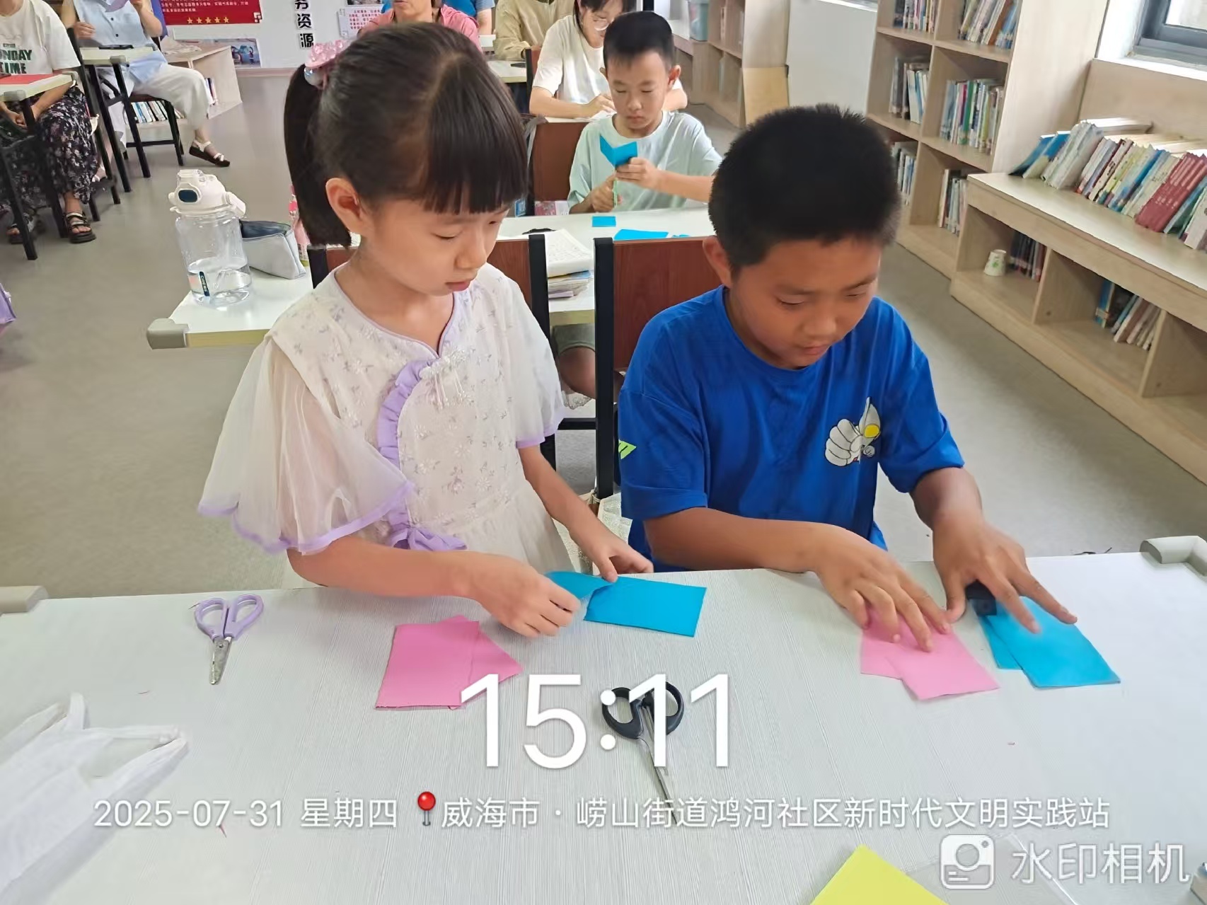 崂山街道鸿河社区新时代文明实践站于2025年7月31日14点-16点邀请吴占波专家开展手工剪纸培训活动。此次活动进一步关爱辖区青少年儿童健康成长,让孩子有一个学习和交友的平台,也能让孩子走出家门得到兴趣的发展。