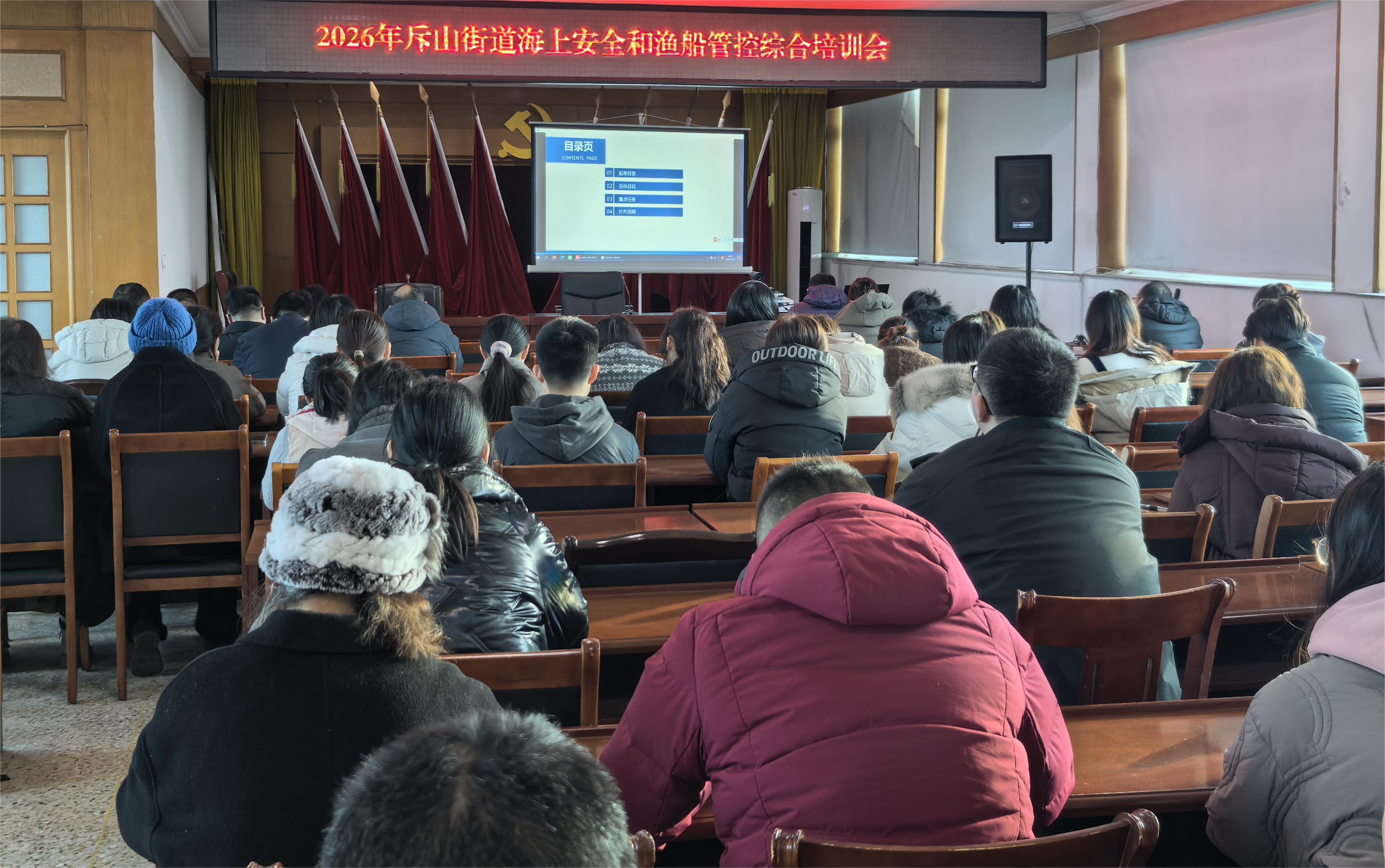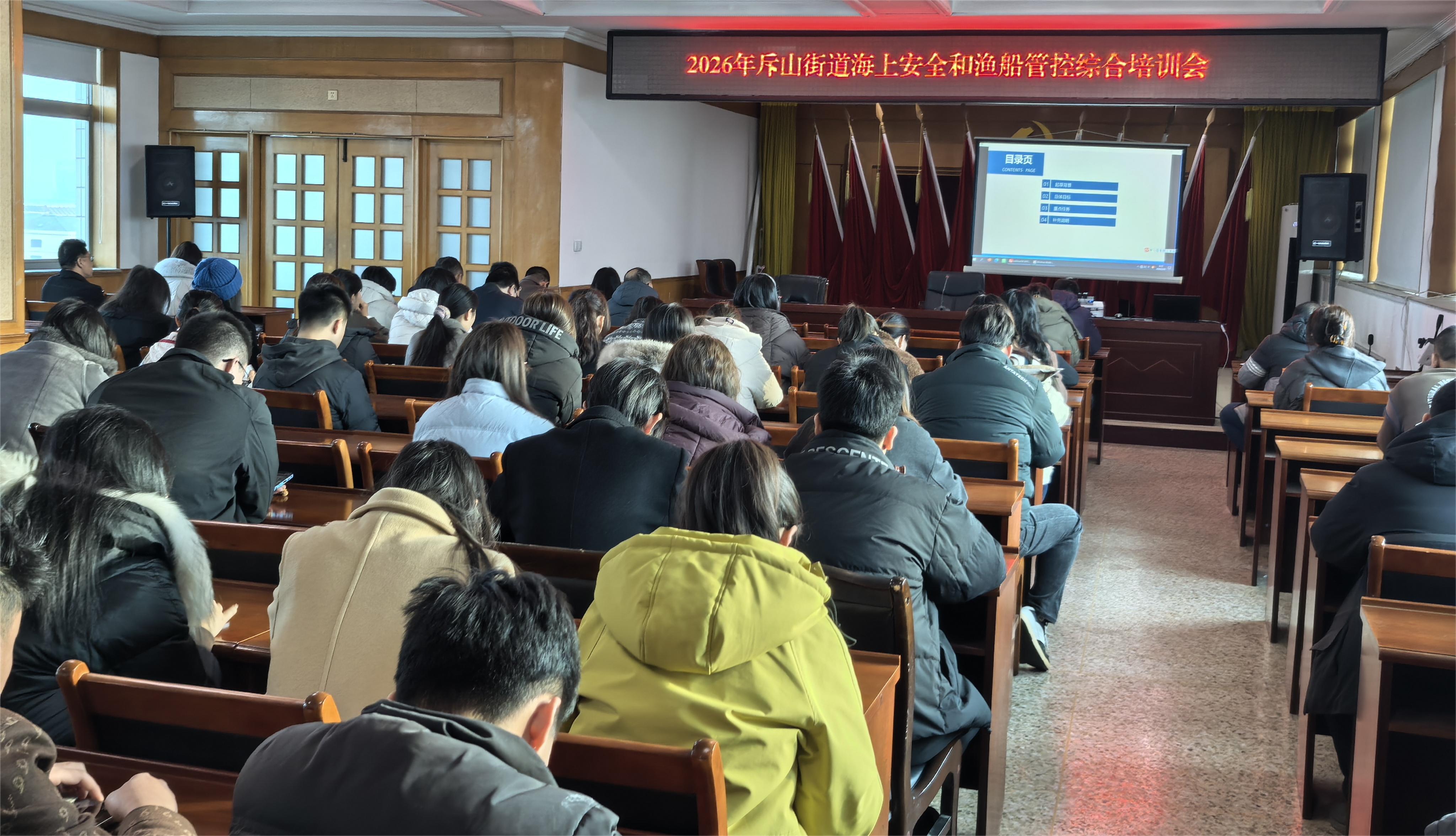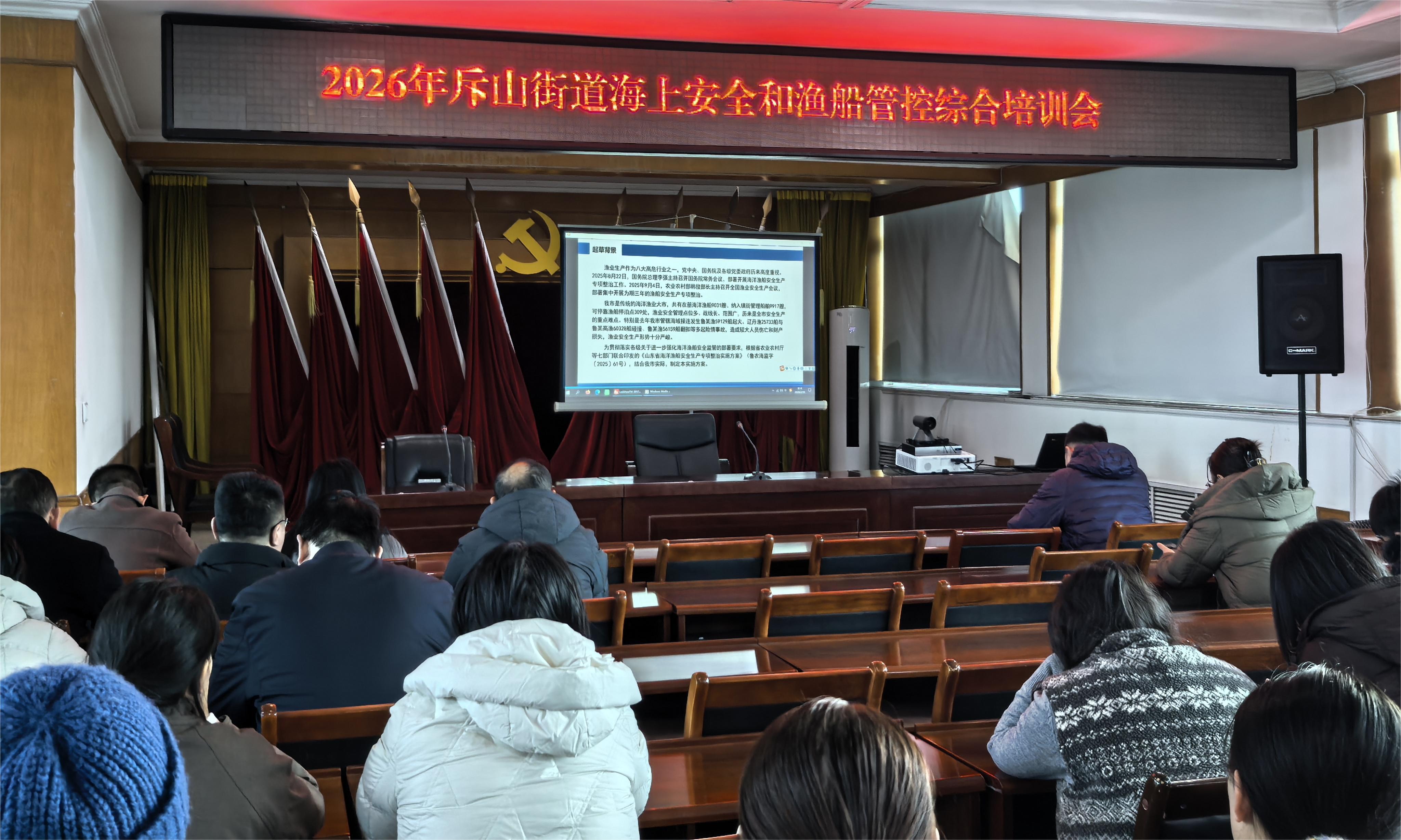 斥山街道于2026年2月8日8:30-9:30开展2026年斥山街道海上安全和渔船管控综合培训会,通过系统学习,参训人员进一步明确了监管要求、掌握了检查技能、强化了责任意识,为下一步工作开展奠定了扎实基础。
