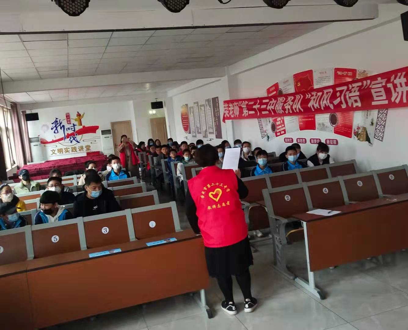 为提升学生文化素养,充实学生业余文化生活,2021年4月10日9:00-11:00二十三中学"和风习雨"走进西火塘寨社区,开展学习荣成"海洋文化、红色文化、生态文化"三大特色品牌,师生共同学习荣成当地特有的海洋文化资源、红色将军县优势和海草房大天鹅等生态优势。通过学习,激发了同学们的灵感,引发了他们的思考,活跃了他们的思维。