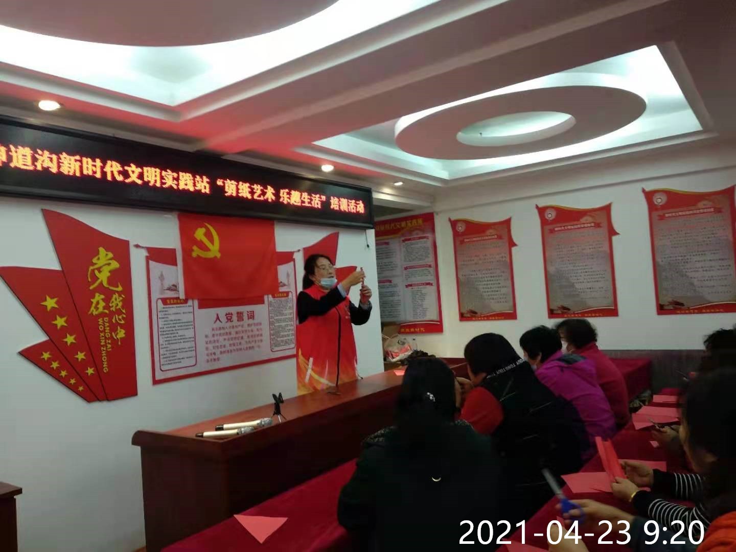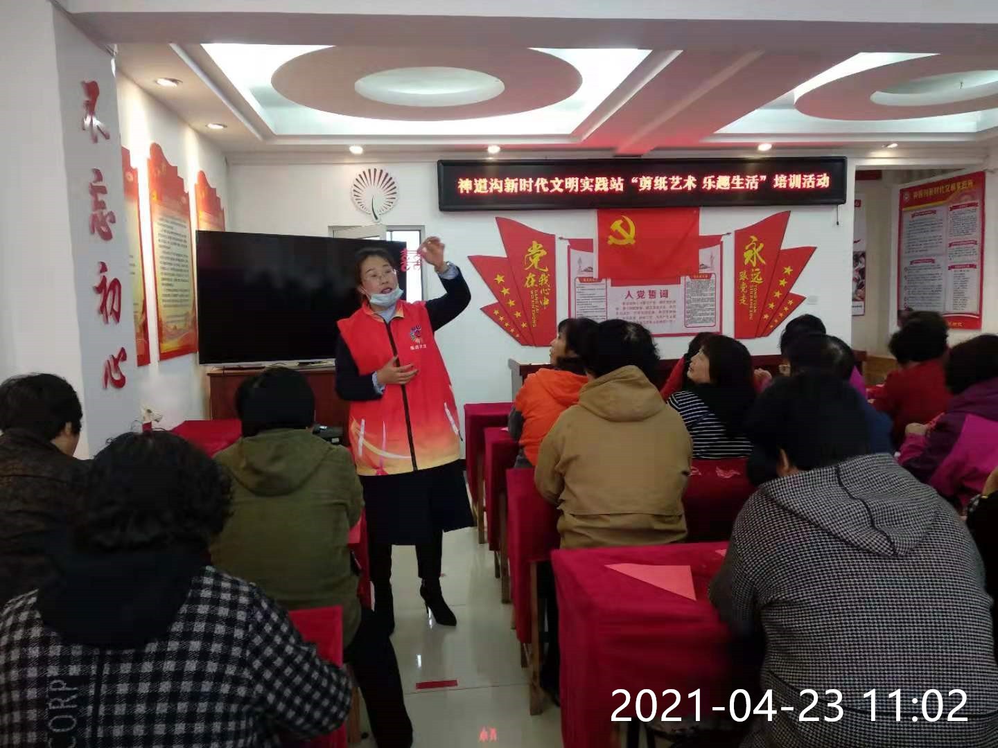 为了传承民族文化,培养辖区居民的兴趣爱好,丰富辖区居民的业余文化生活,神道沟新时代文明实践站于2021年4月23日邀请文联老师对辖区居民群众开展以“剪纸艺术·乐趣生活”为主题的剪纸艺术培训活动,通过此活动让居民在剪纸中感受民间传统艺术的魅力,弘扬剪纸艺术。