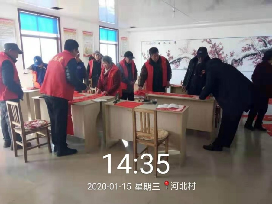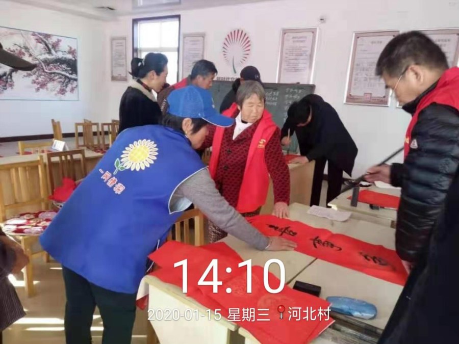 习近平总书记强调,我们要以更大的力度、更实的措施加快建设社会主义文化强国,培育和践行社会主义核心价值观,推动中华优秀传统文化创造性转化、创新性发展,让中华文明的影响力、凝聚力、感召力更加充分地展示出来。为了弘扬优秀传统文化,营造欢乐浓厚的新春氛围,河北村新时代文明实践所于1月15日下午2:00-3:30开展“迎新春、写春联、送祝福”活动,邀请书法爱好者手写春联,并组织志愿者将春联送到优抚对象、老党员的家中,通过这次活动,为他们送去新春祝福。