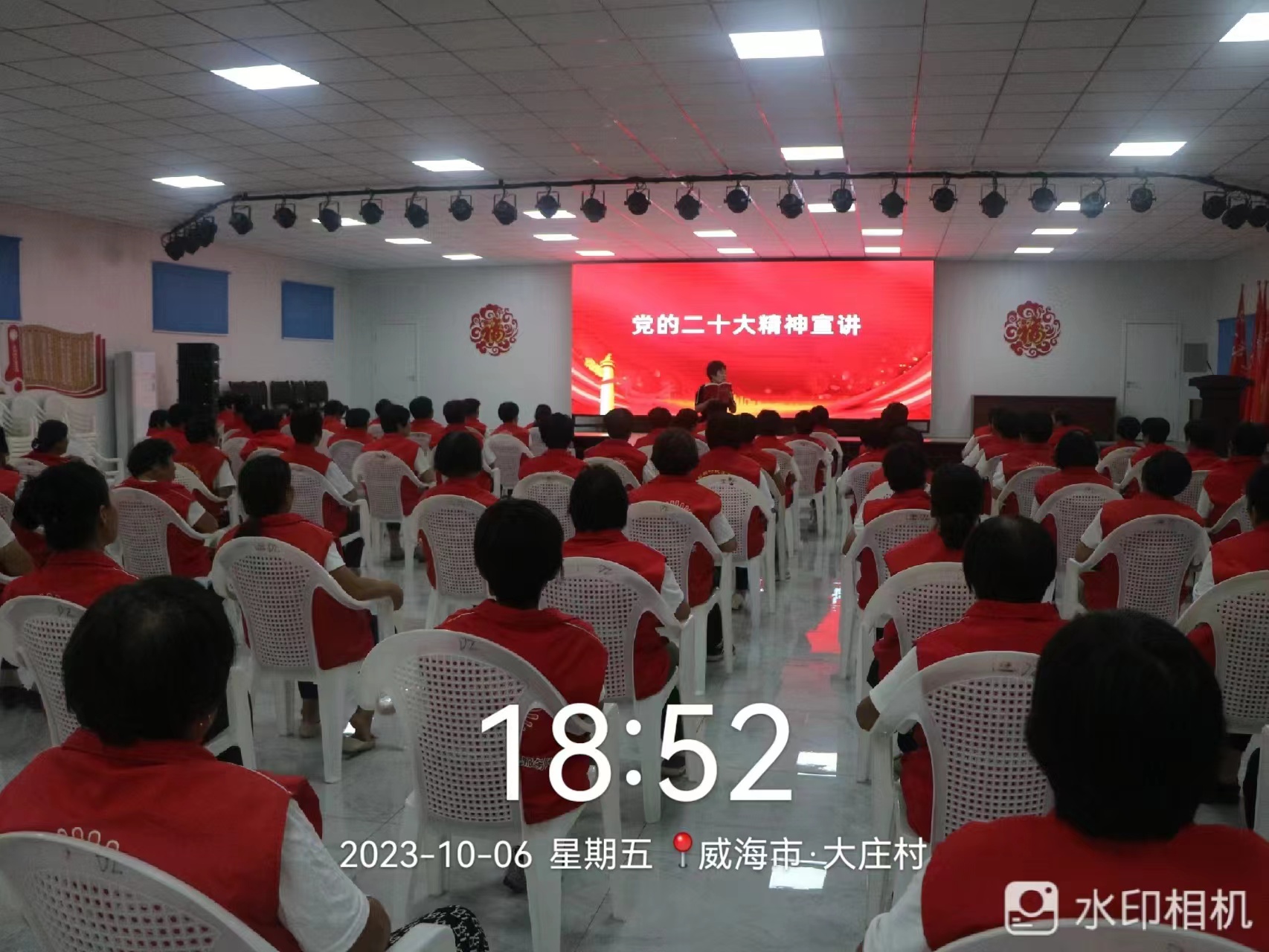 大庄村新时代文明实践站于2023年10月6日19:00-20:00开展了党的二十大精神宣讲活动。通过活动的开展,把思想和认识统一到党的二十大精神上来,引导了大家以实际行动在自己的岗位上磨砺初心、矢志向前,为助力村居发展贡献自己的力量。