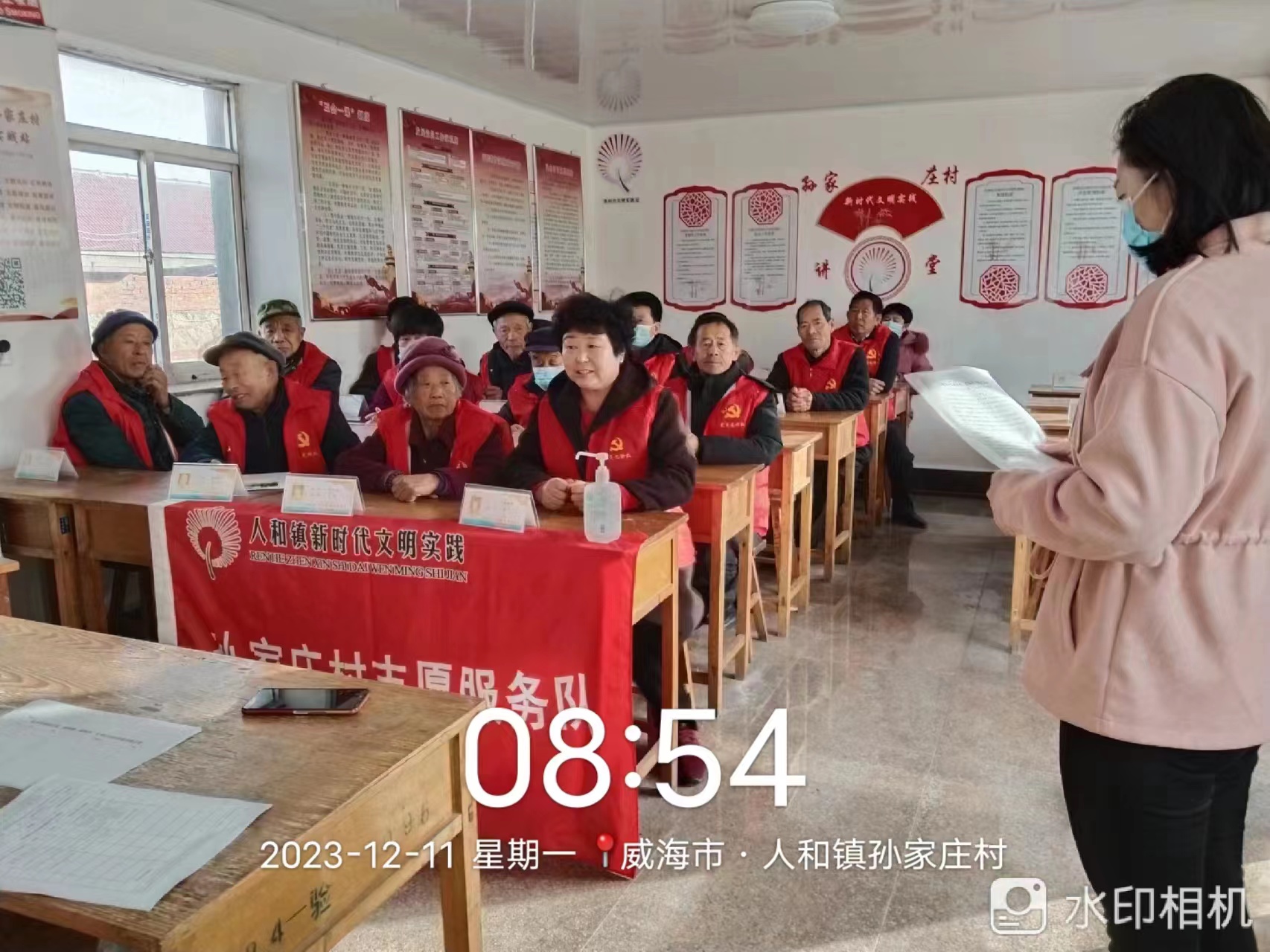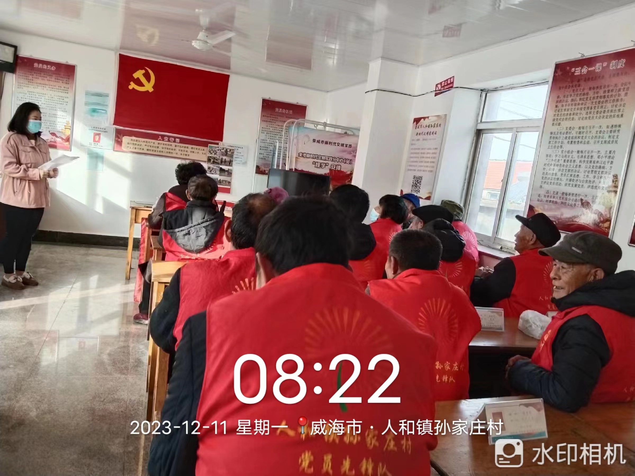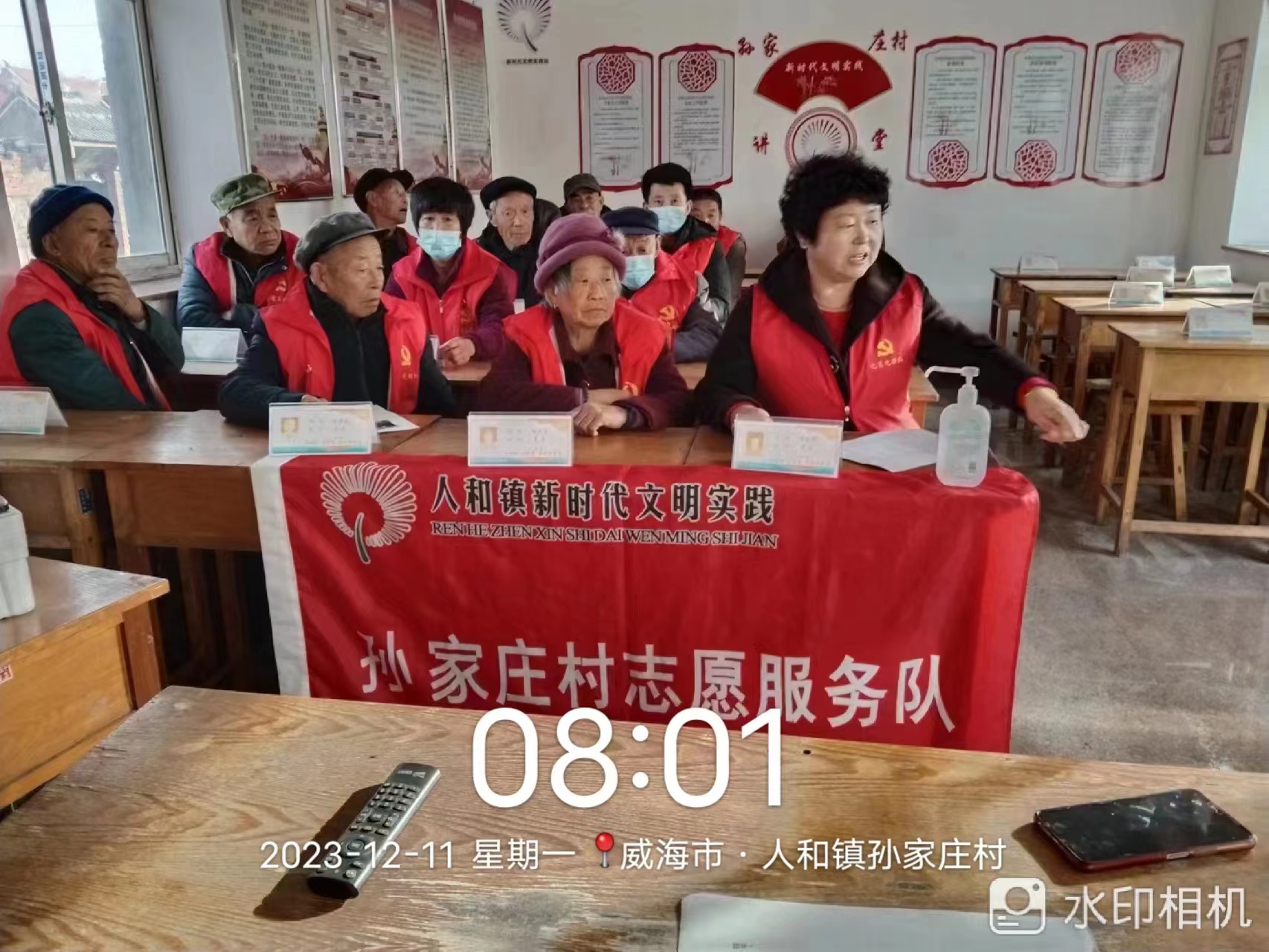 【活动时间:2023-12-11 08:00:00】【活动地点:孙家庄村新时代文明实践站】【实际参加人数:21】【聘请专家:0】
